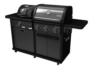 The Coleman Revolution™ Dual Fuel BBQ offers the best of both worlds. It combines a full-size charcoal kettle grill and a full-size gas grill in one fantastic cooking appliance.