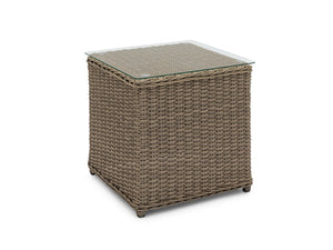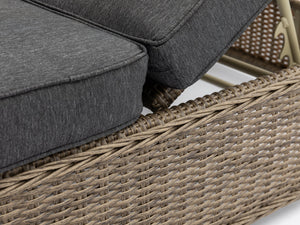 Natural nut brown wicker, charcoal cushion & clear glassMaterials