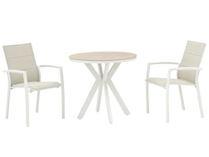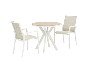 Robust and timelessly elegant, the Marina-Capri 3-Piece Sintered Stone Outdoor Dining Setting is a practical outdoor entertaining solution all year round. The Capri Sintered Stone Outdoor Dining Table’s design is deliberately understated. Its frameless single-piece sintered stone slab makes the tabletop virtually zero maintenance. The aluminium backing and legs provide rigid support for years of outdoor dining in any space. The Marina Aluminium Outdoor Dining Chairs are light, yet made of a very solid & rust-free aluminium construction. The double-layer padded texteline seat & back with quick-dry foam infill delivers lasting high tension, excellent comfort and exceptional performance. Comfortable and stackable, they are perfect for everyday al fresco dining.