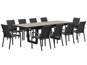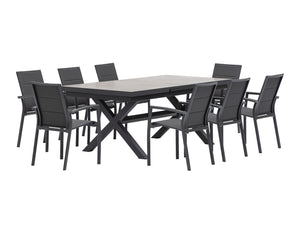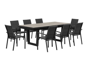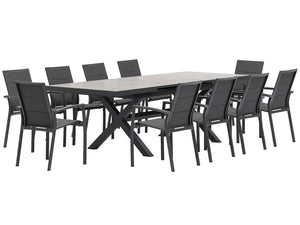 Robust and timelessly elegant, the new Marina-Mosman 11-Piece Ceramic Outdoor Extendable Dining Setting is a versatile outdoor entertaining solution all year round. The automatic pop-up extension mechanism on the table makes extending or folding the tabletop so easy. The table features three one-piece ceramic slabs, with a sturdy aluminium frame seamlessly wrapping around the edges, making it a more stable and refined product than similar ones on the market. Choose from two table leg designs to suit your taste and practical needs. The chairs are light, yet made of a very solid & rust-free aluminium construction. The double-layer padded texteline seat & back with quick-dry foam infill delivers lasting high tension, excellent comfort and exceptional performance. Comfortable and stackable, they are perfect for everyday al fresco dining.