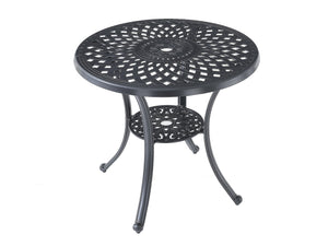 The all-new Orlando 3-Piece Cast Aluminium Outdoor Dining Setting features a state-of-the-art die-cast aluminium structure with durable powder-coating for the ultimate rust-proof strength and sturdiness. The chairs come fully welded with comfortable seat cushions. The delicate wave pattern, and umbrella hole on the tabletop offers great practicality while remaining stylish. Comes in two great colours, black or sandstone, the Orlando is perfect for any outdoor space.