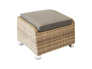 The Positano Wicker Outdoor Ottoman is a welcoming addition to any lounge setting. It features a rust-proof aluminium structure, unique double-strand weave and supportive cushion.