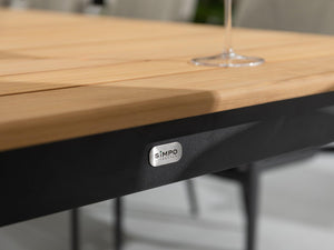 The contemporary design of the Timmi dining chair and its harmonious combination of aluminium and woven back will create a cozy atmosphere on your patio. The olefin rope stretches vertical over a solid aluminium frame. The polished teak bars mould to the frame beneath. The aluminium seat with olefin seat cushion delivers the comfort with no compromise on beauty.